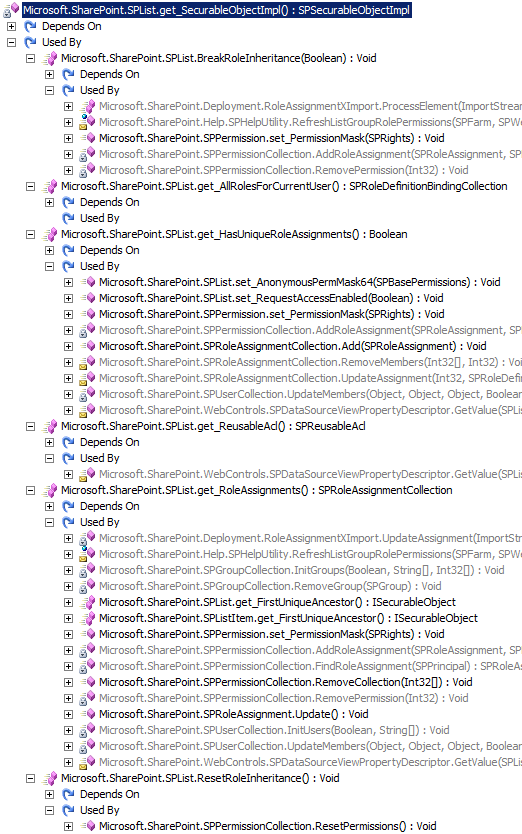 SPList.get_SecurableObjectImplSo now we’re dealing with several more points of entry. For example, in SPListItem: